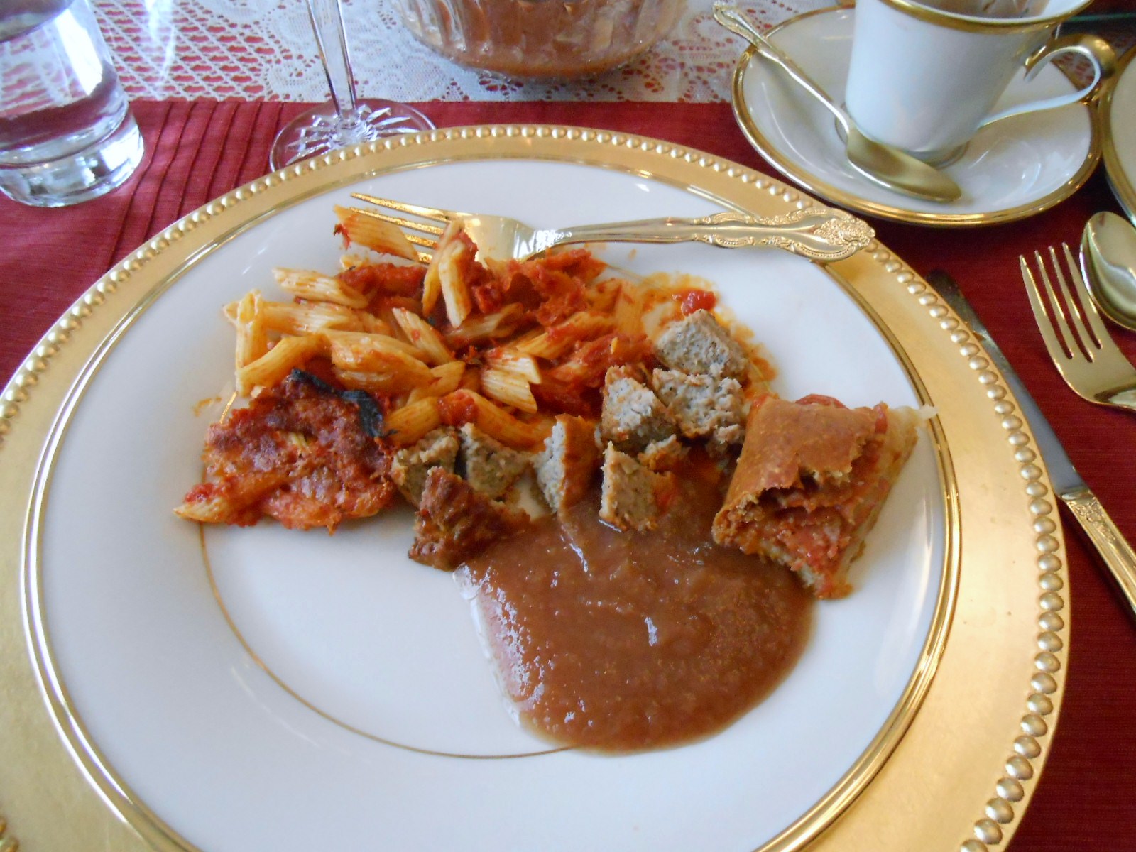 The table was set nicer than any fine restaurant. Baked ziti, pepperoni bread,